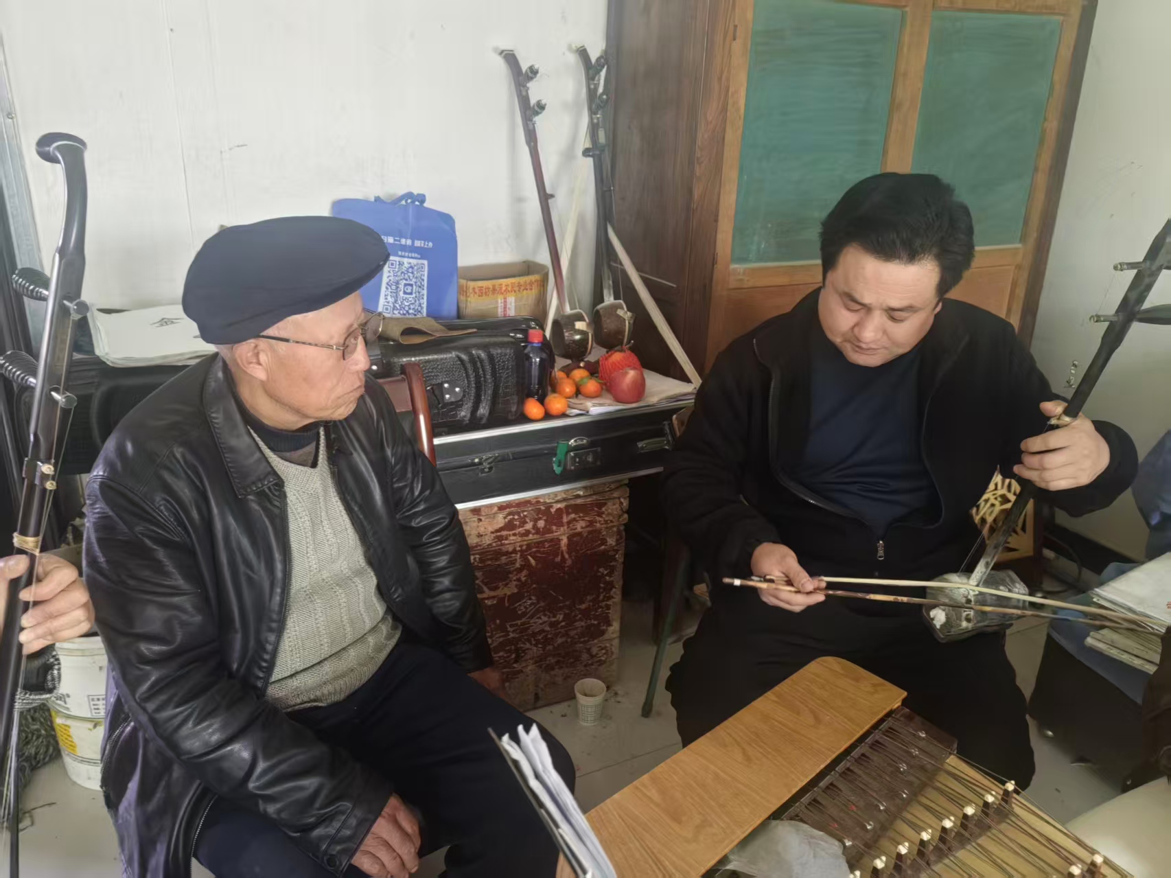 在为期三天的采风中,参与采风的会员热情高涨,深度了解剧团的日常。他们不仅观摩了秦腔经典剧目《金麒麟》的排练,还与乐师们共同切磋,合奏秦腔曲牌,亲身体验了戏曲音乐的独特韵律。会员田慧学、赵峰等老师更是与剧团演员深入交流,共同探讨秦腔的发展历史、角色塑造以及传统剧目的剧情内涵,为日后的文学创作积累了宝贵的素材。